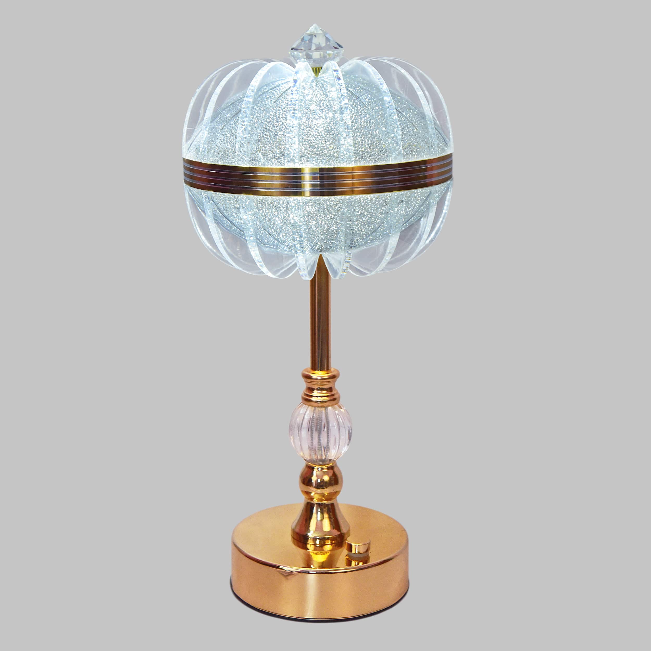 Choose from Golden, White, or Golden-White Mix to match your mood or décor style/ Easy-to-use touch switch for turning on/off and changing light colors with a simple tap./ Works with USB cable or rechargeable battery, making it convenient and portable./14-inch tall crystal glass shade with a luxury golden stand enhances modern and classic interiors/ Ideal for bedrooms, living rooms, offices, and festivals. A stylish gift for weddings, housewarmings, or anniversaries.